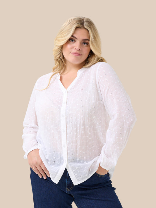 Skjorten her er med broderingsdetaljer, den er gennemknappet og med en lille v-hals. Der er...