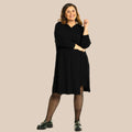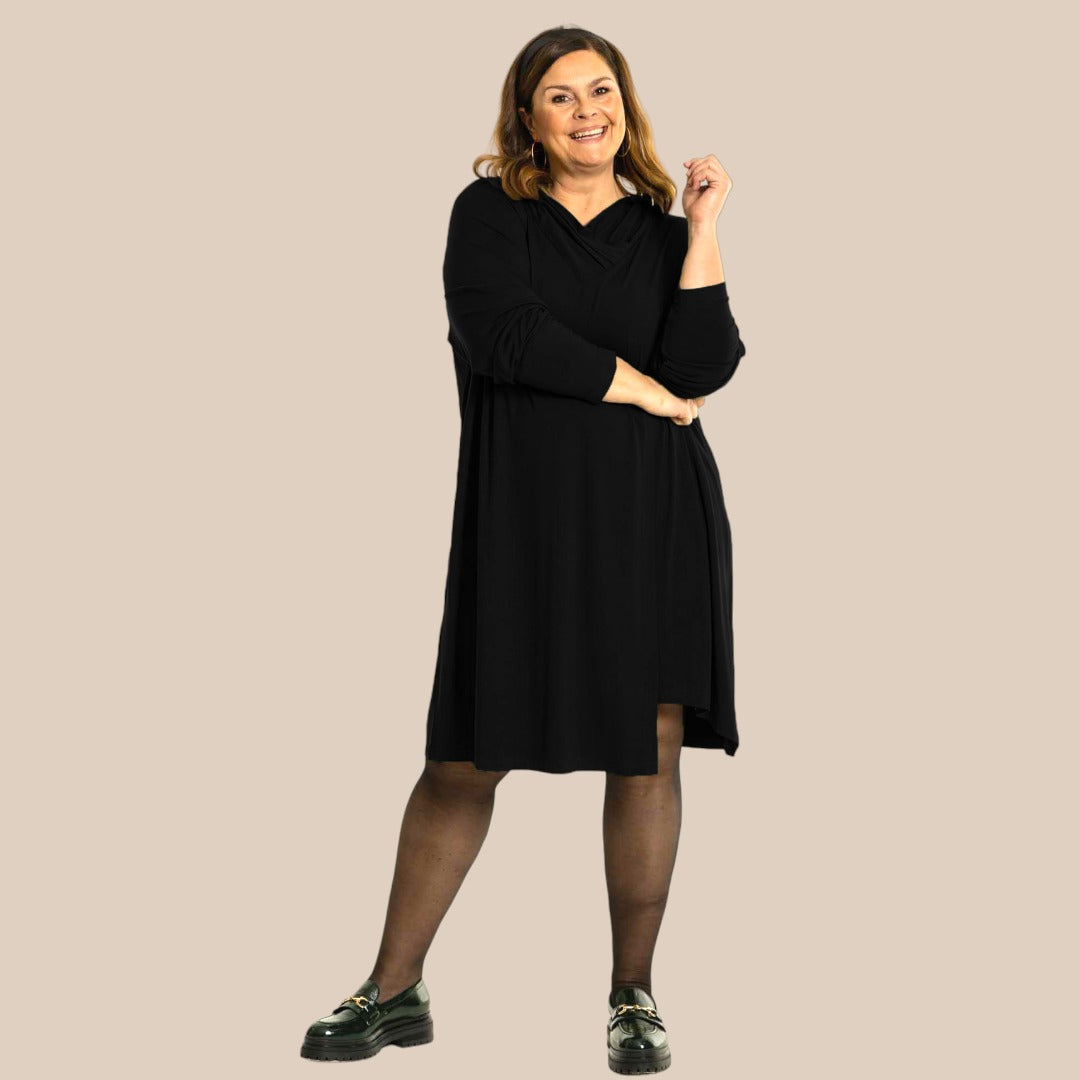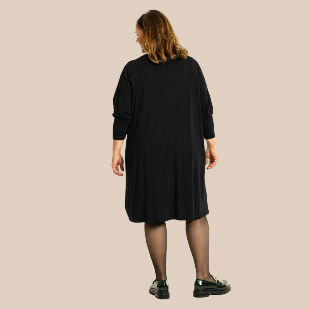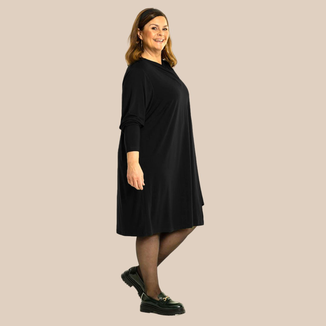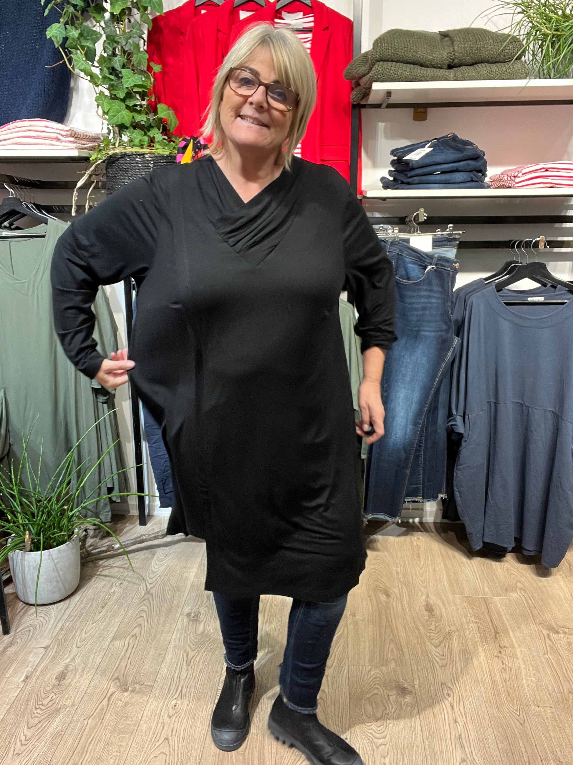 Elaine hedder tunikaen, men jeg vil nu kalde det en kjole. Den har a-facon og går ned i v-hals hvor der er er læg omkring en kjole jeg bruger ofte da den er dejlig blød og er fin uden at være over pyntet. det vil være tilbehøret der gør forskellen.