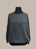 Dejlig tynd bomulds sweatshirt, som er rund i hals og med langt ærme, der er et præget tryk foran som er lidt lys i kanten. Onesize og er rummelig i facon. vi mener den kan bruges op til str. 50+ men tjek lige brystmål.