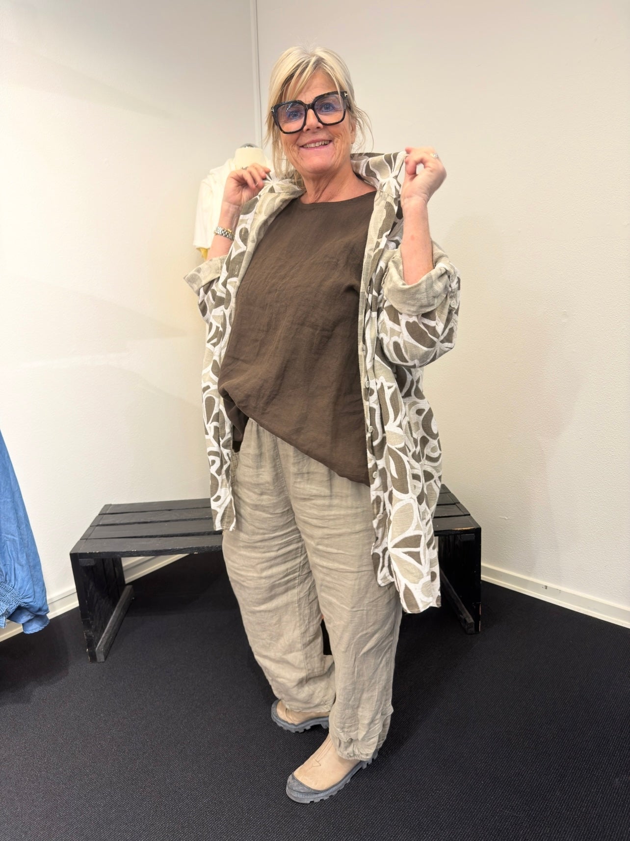 Når det er køligere 🍂❄️ kan du nemt bruge strømpebukser eller en tynd leggings under – komforten bevares, og looket er stadig elegant. Perfekt til både hverdag og fritid!