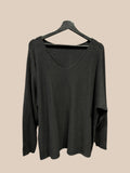 Almindelig og faktisk ret brugbar lækker tynd strik med v-hals og med ærme der går lige ned til hånd fladerne.