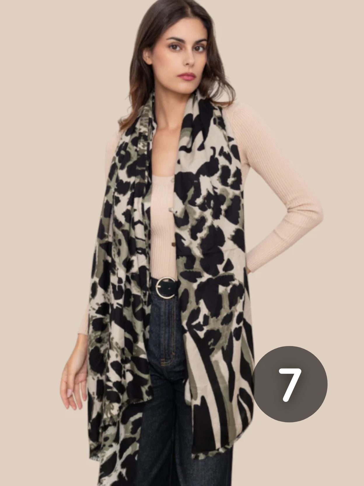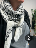 Flot mønstret viskose tørklæde, som er klædeligt til rigtig mange ting, da det er simpelt, men alligevel kan give det ekstra pynt til dine sæt.