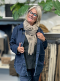 Smart denim jakke med masser af stræk. Den er gennemknappet, har to lommer, lange ærmer og er dejlig at have på. Perfekt overgangsjakke eller kørejakke, da den både kan bruges inde og ude.